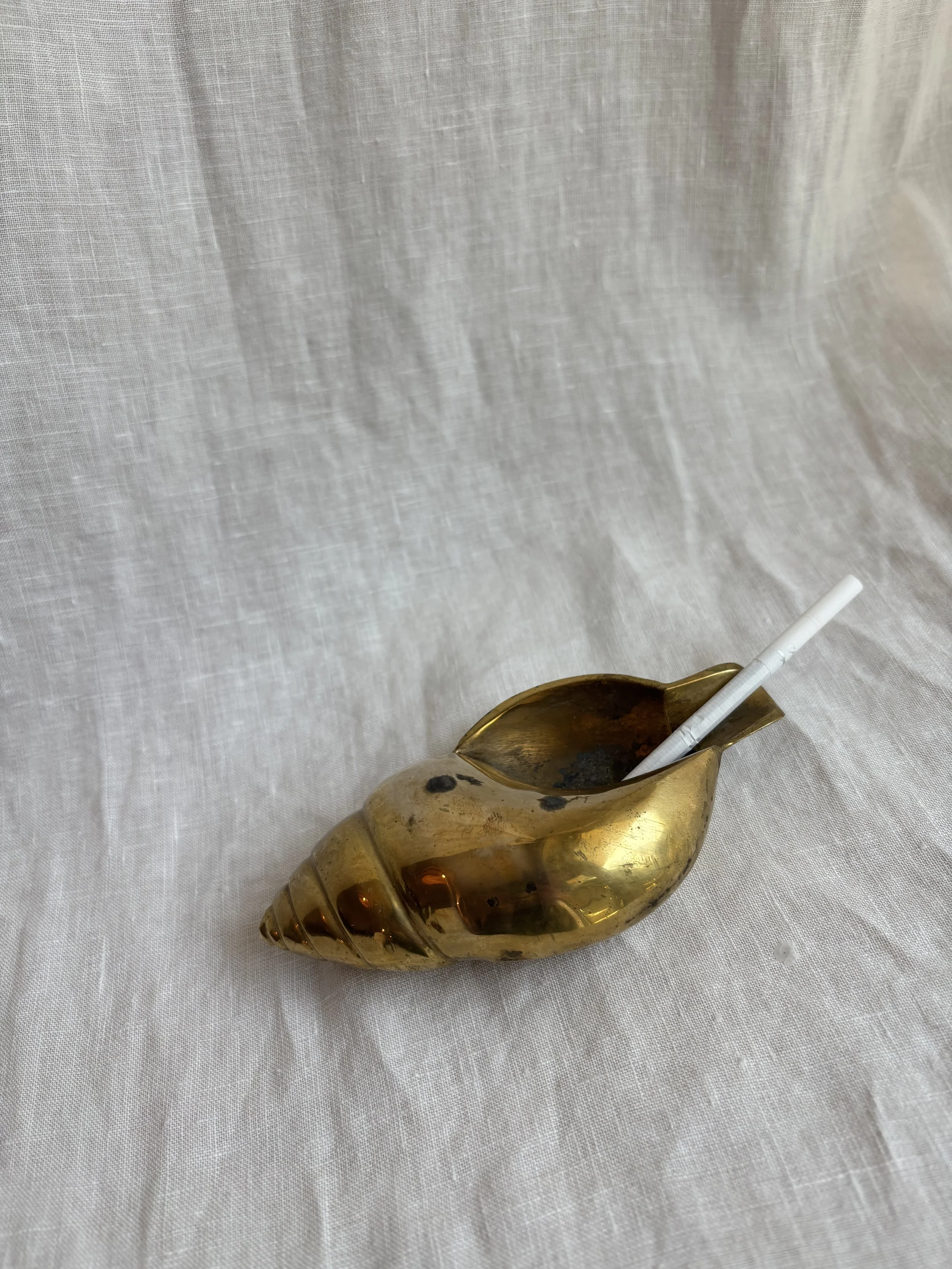 Gorgeous brass ashtray in shell motif. Some areas of wear due to age, please see images for detail. Coordinates perfectly with our brass shell napkin rings.