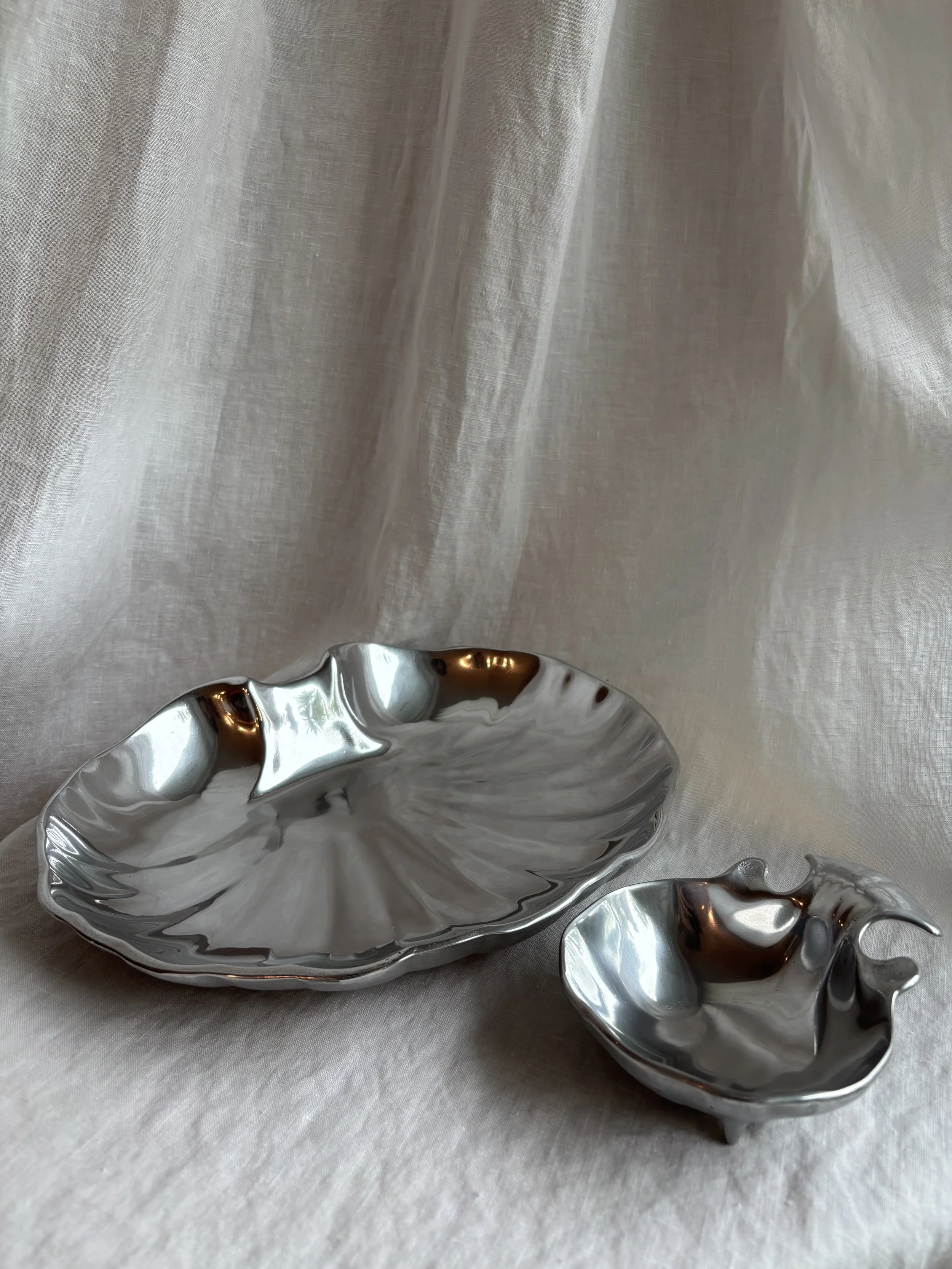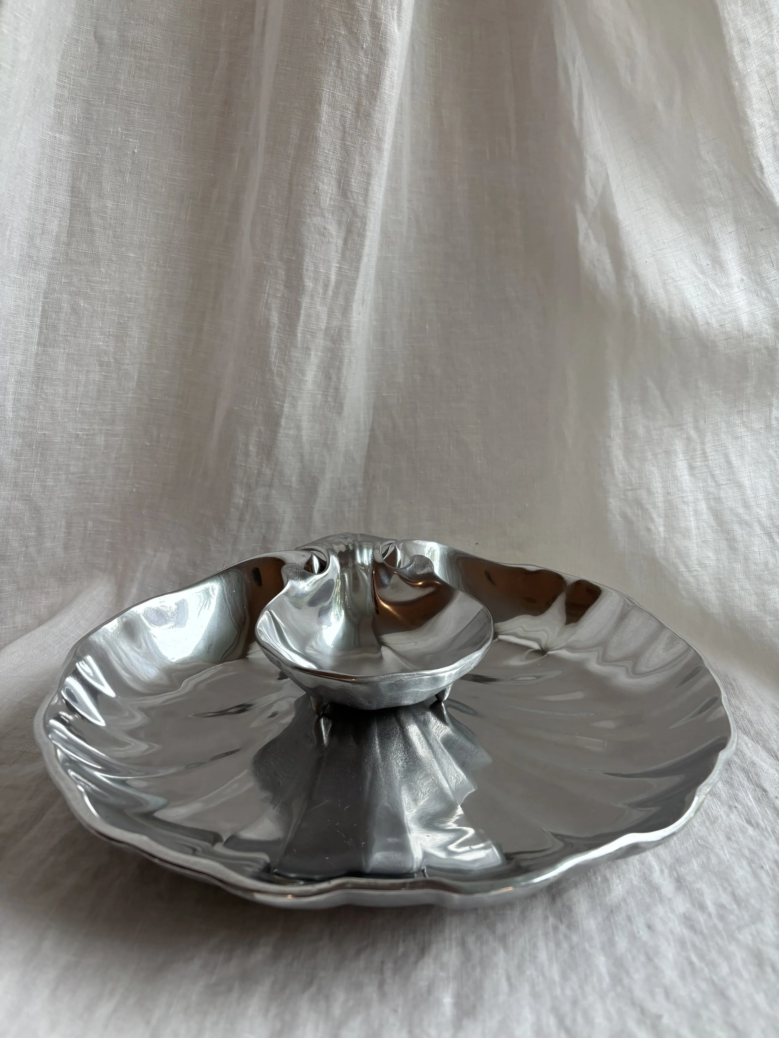 Beautiful clamshell serving platter featuring removable petite coordinating dip bowl.