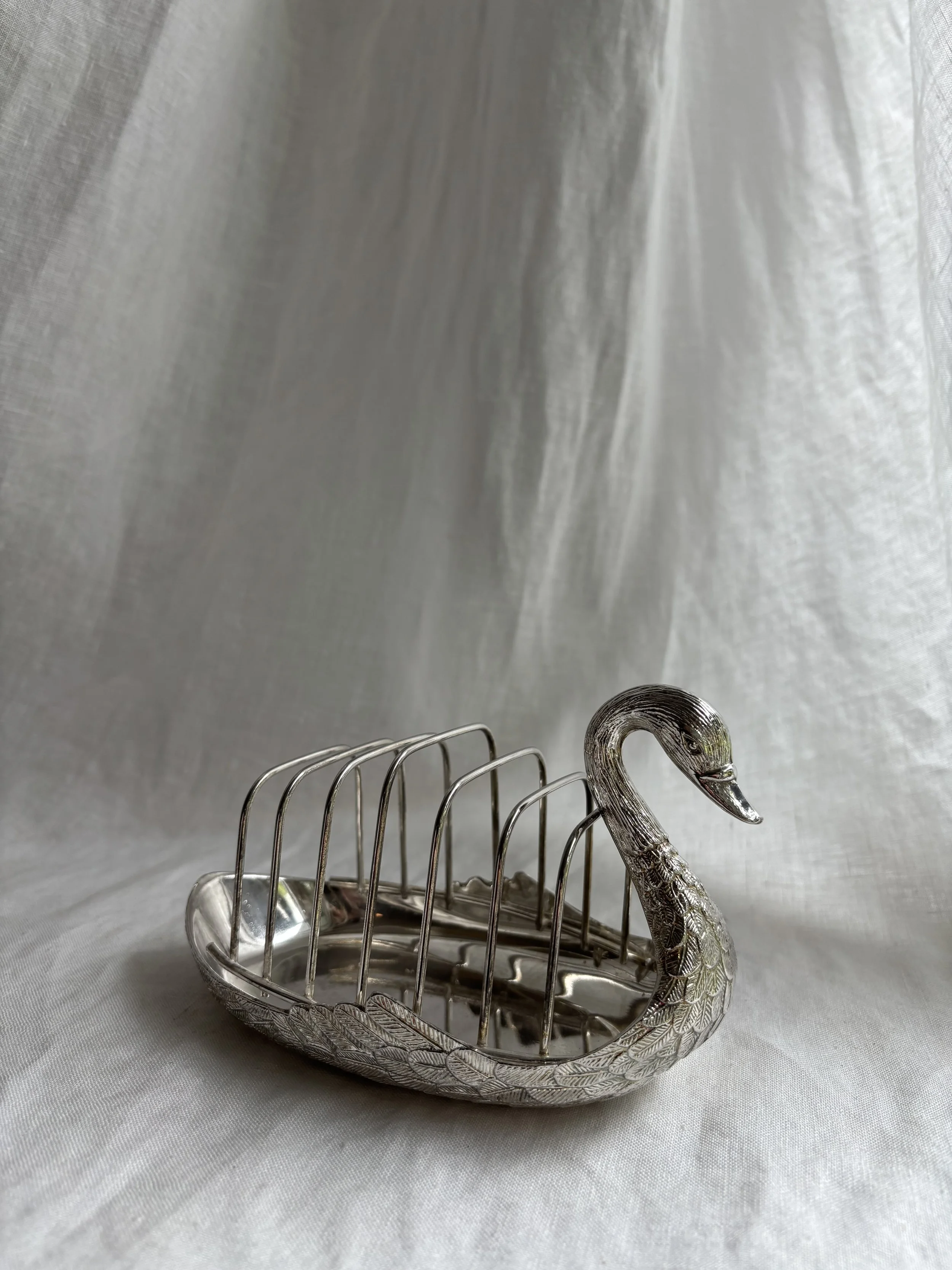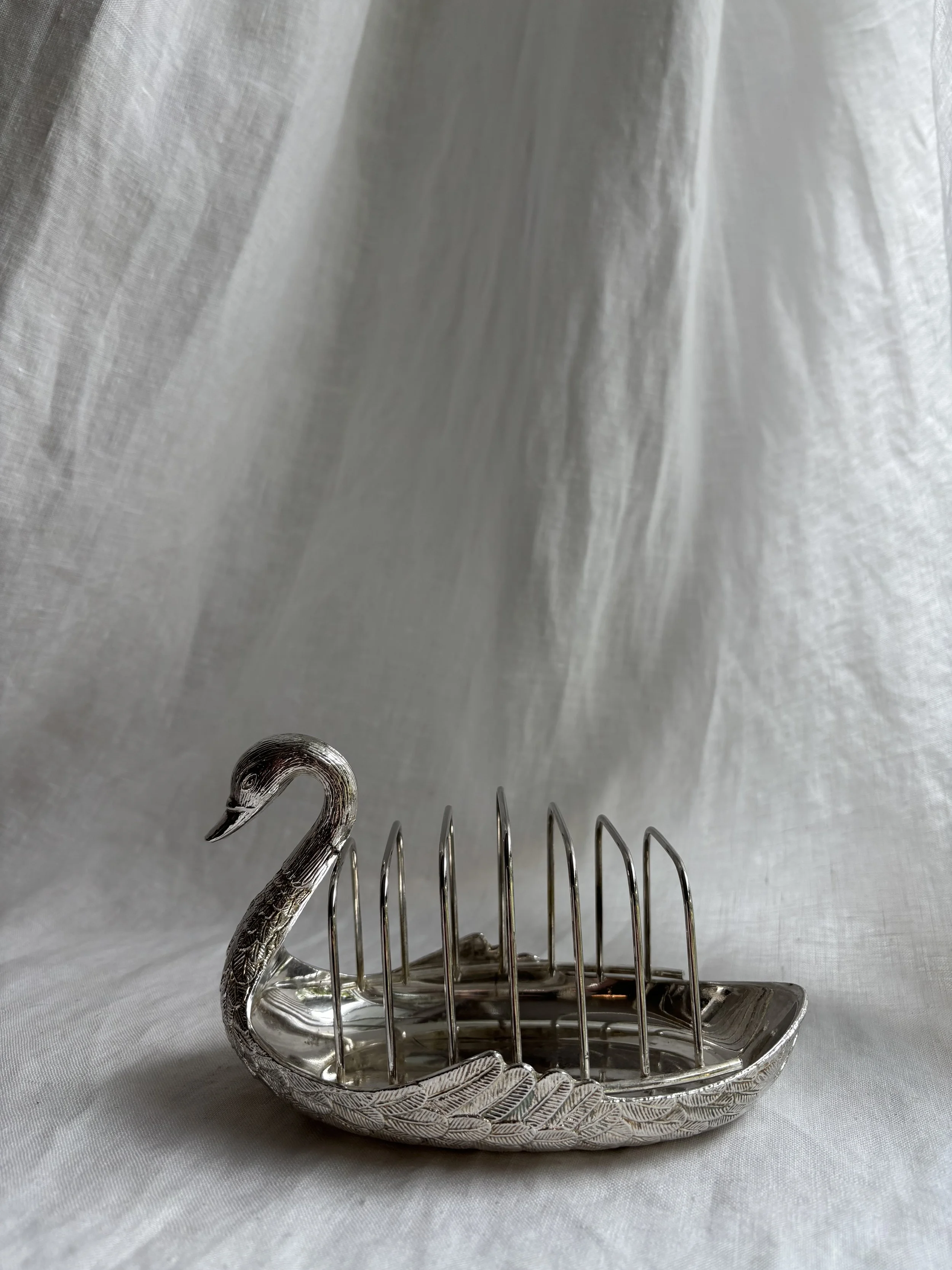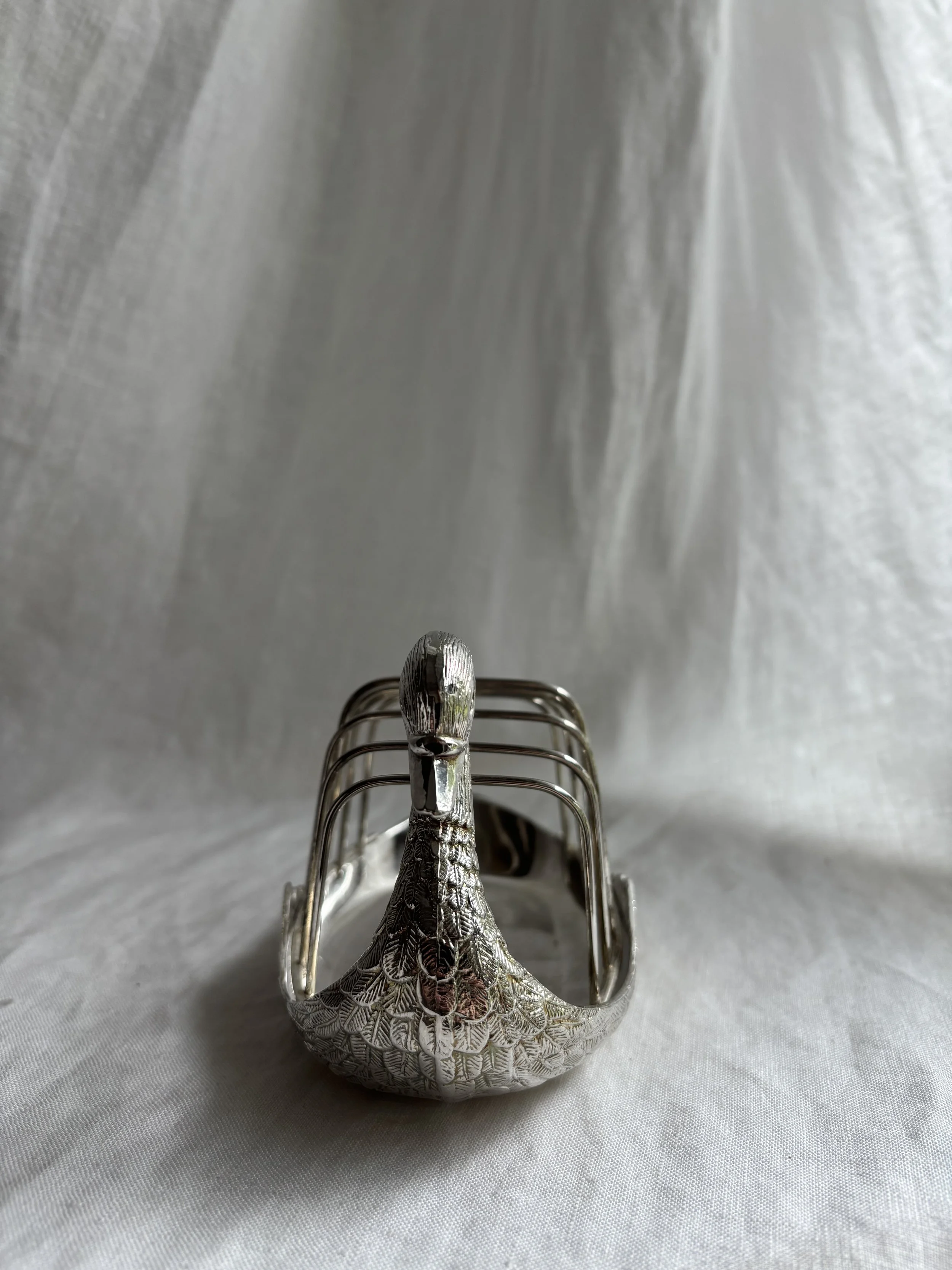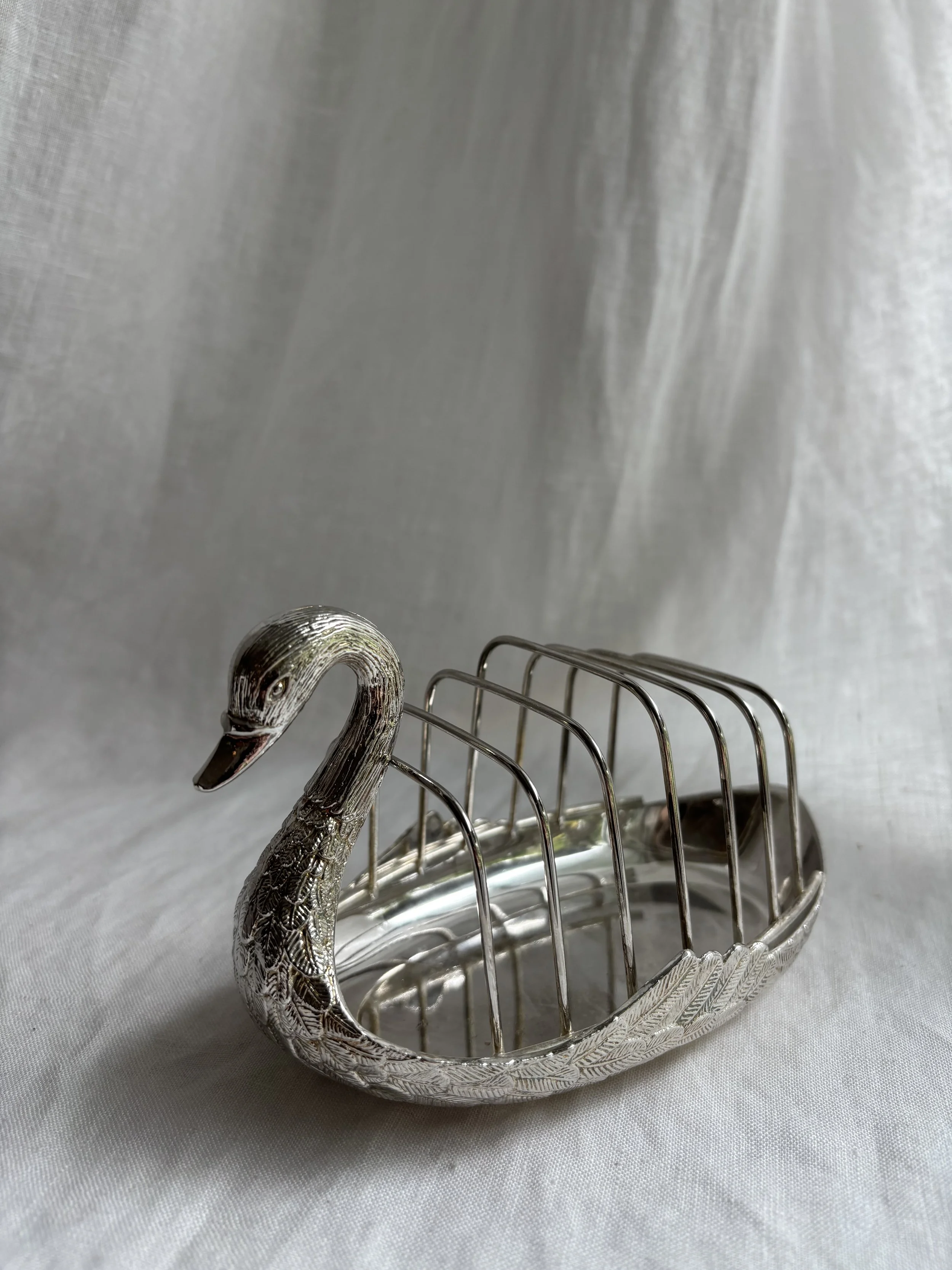 Lovely swan dish in silver plate featuring removable rack which can serve as a letter or napkin holder.